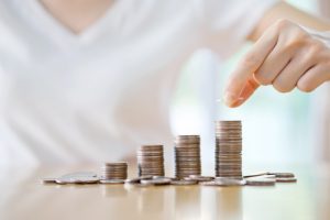 woman put coins to stack of coins
