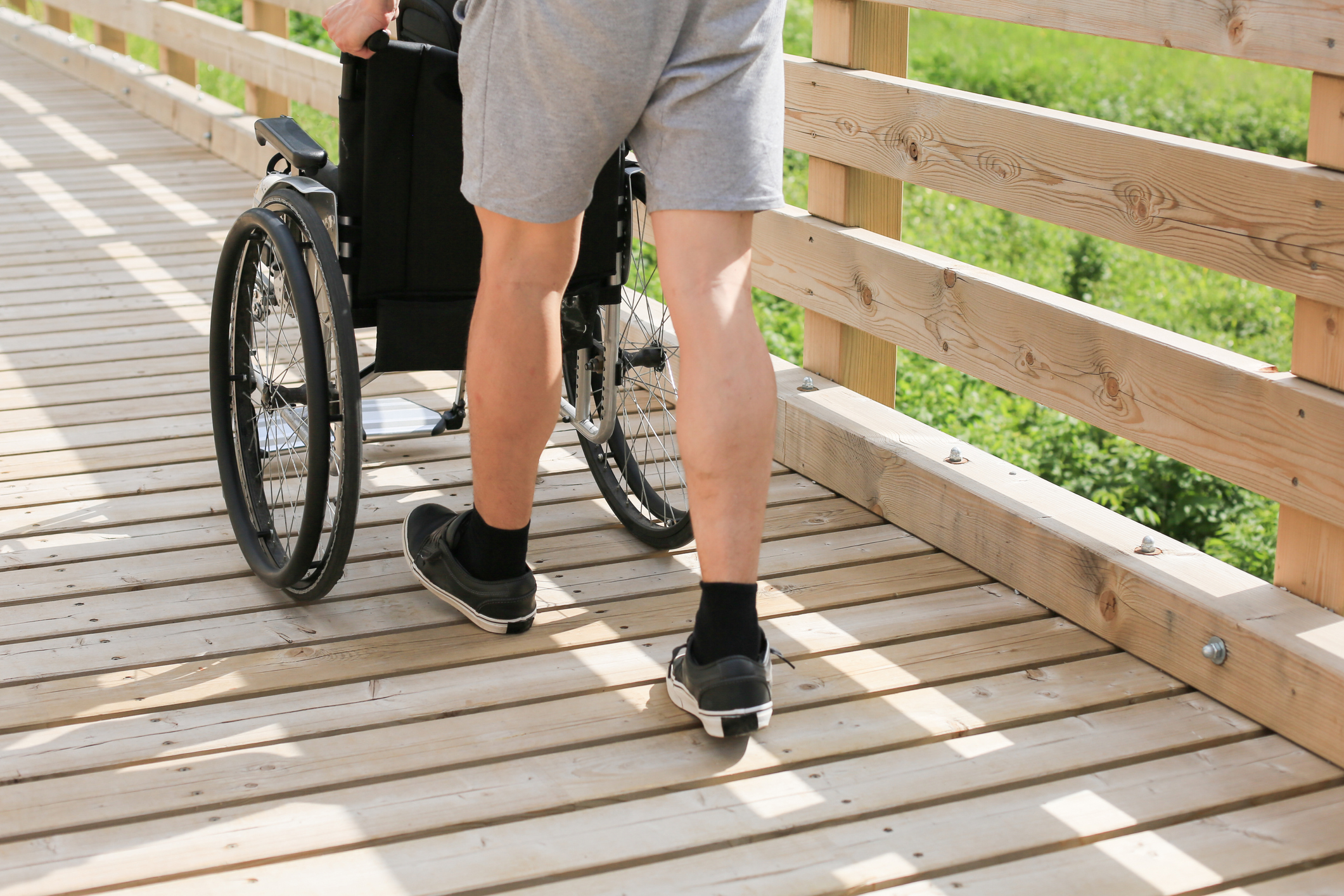 Assistant and disabled young man on a wheelchair